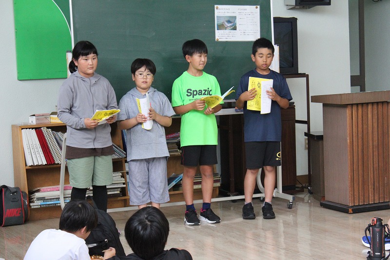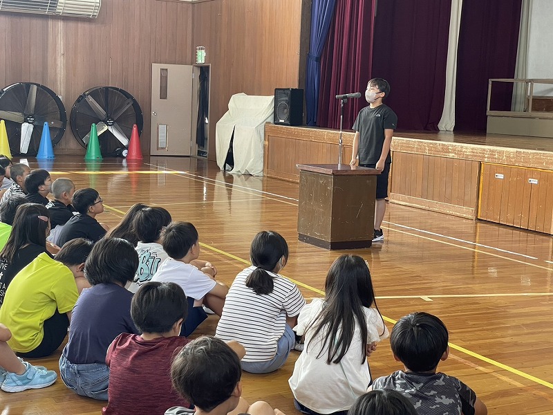 締めくくりは青年の家を後にする前の退所式とバスに乗って学校に戻ってきた後に行った解散式。実行委員の最後の仕事です。寝不足の人もチラホラ…でしたが、眠い目をこすりながらも最後まで集中力を切らさず、実行委員の声かけで行動した5年生からは、強い連帯感が伝わってきました。大きな行事を自分の力、そして友達との協力によってやり遂げ、力を発揮した5年生はとても頼もしかったです。宿泊学習を経て味わった達成感をこれからのさらなる成長へとつなげていけるよう、応援していきます!