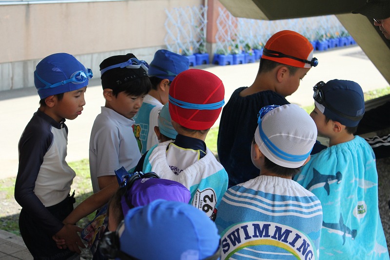 水泳学習の指導は必ず複数名で行い、水中とプールサイドに分かれて、複数の目で中と外から子どもたちの様子を常に観察するようにしています。子どもたちの安全を第一に学習を進めています。9月9日の6年生の着衣泳まで暑い夏にしか体験できないプールを存分に楽しみ、各学年の目標を目指して水泳学習に取り組んでいきます。