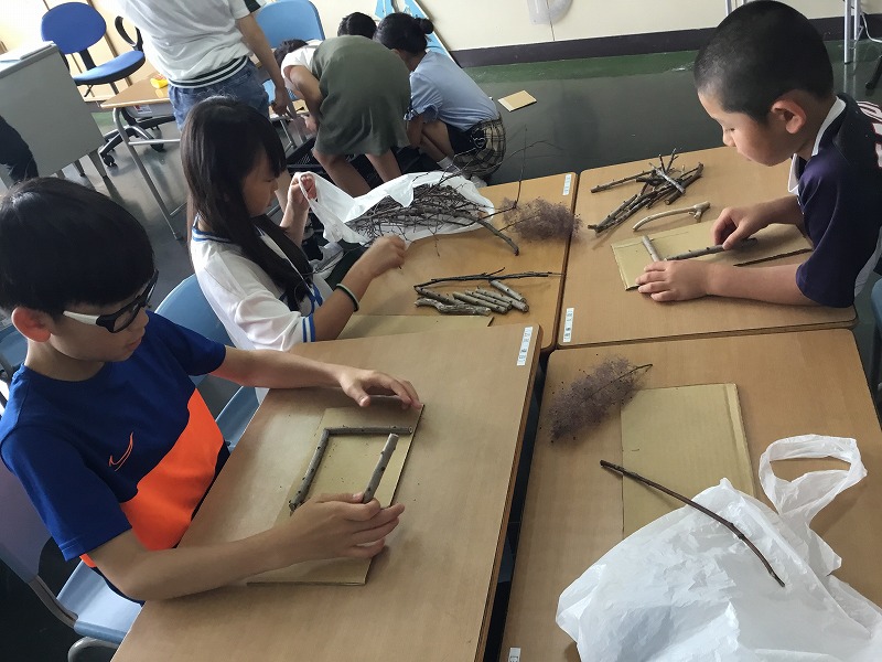 4年生は図工で「ひみつのすみか」を作っています。この題材では、木の材料に触れてそのよさやぬくもりなどを感じ取りながら表現を深めていきます。
