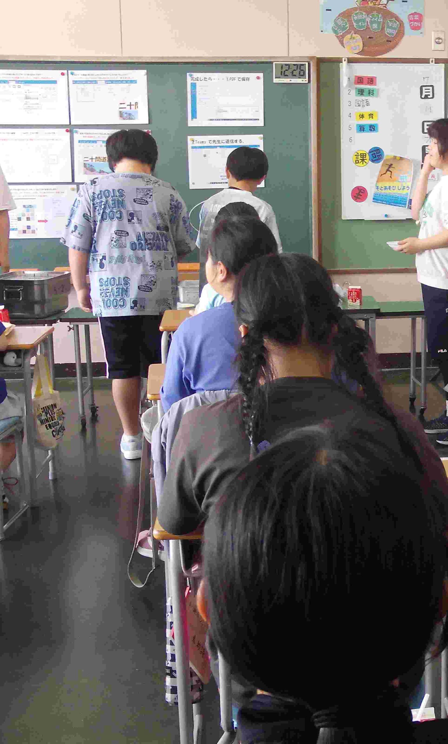 給食時間の終わり時間近くに様子を見に行くと、おかわりに並んでいる人が多かったです。