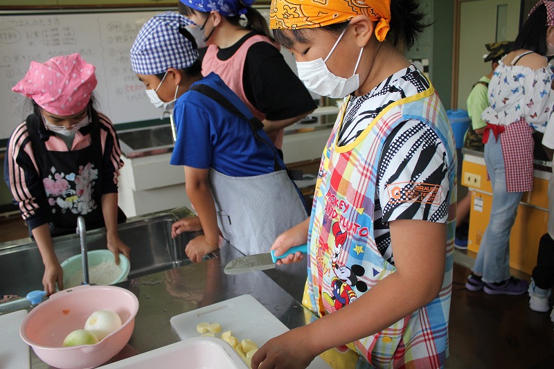 家庭科室では5年生の各班で役割を分担し、米をとぐメンバーと野菜を切るメンバーに分かれて、協力しながら取り組んでいました。これまでの経験と家庭科の学習を活かしながら集中して準備を進めている5年生、頼もしかったです。