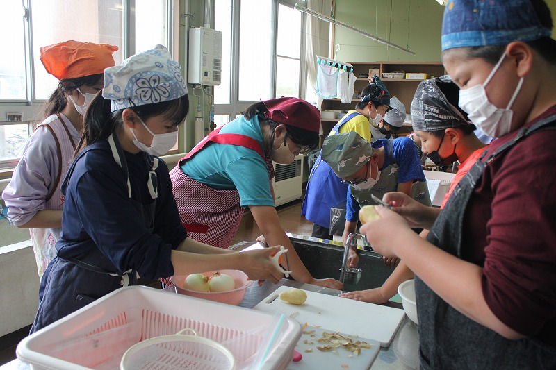 3時間目から、最初の取組である『調理実習』を始めています。3・4時間目はまず、夕食の下準備。今日の夕食メニューは『カレーライス』ということで、お米をとぎ、野菜を切るところまでをこの時間に行います。
