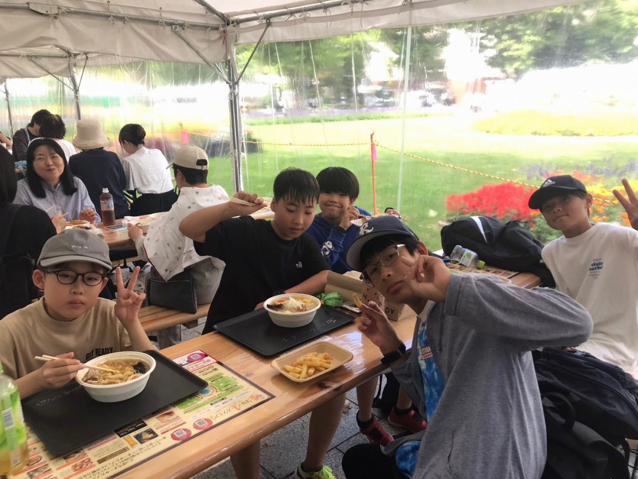 4つのグループにそれぞれ担当の先生がそっと少し離れて付き添うのですが、まずは同じグループの仲間同士で相談したり話し合ったりしながら目的地を目指しました。初めて自分で地下鉄の切符を買うという人もいて、とてもいい経験ができました。時間を見ながら臨機応変に予定を変更したり、余った時間の使い方を考えて行動したりして、とても立派でした。やり遂げた後のハンバーグや焼き鳥、たこ焼きやフライドポテト…といった自分のお好みのランチは格別でした!お小遣いの残金にヒヤヒヤ…なんて人もいて、お小遣いの使い方についても経験を通してしっかり学ぶことができたのではないでしょうか。