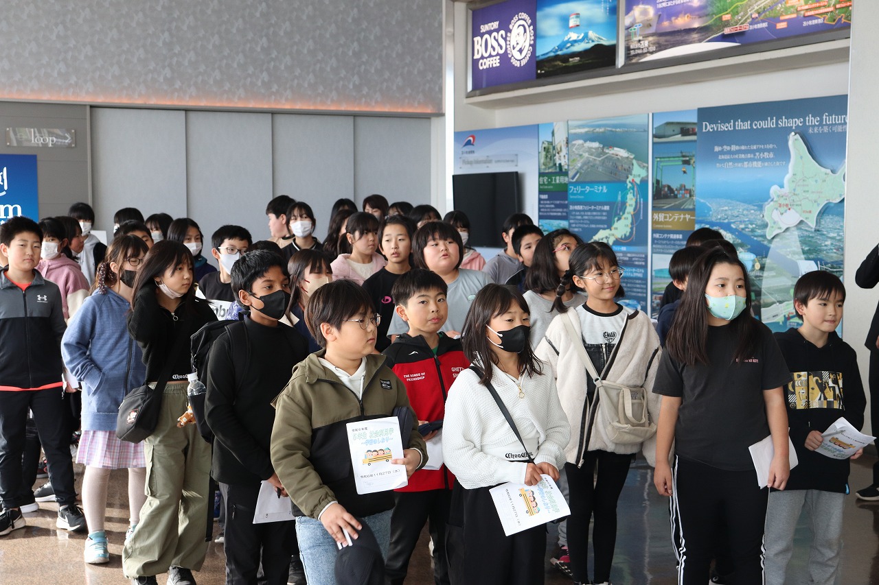 フェリーターミナルでは、大きなフェリーを目の当たりにするだけでなく、実際にフェリーの中も見学させていただきました。まるでホテルの中のような広々としたフェリー内部に大興奮の子どもたち。デッキから眺める海は、また格別だったことでしょう。