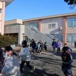 1~6年生までの全員が防寒着を身に着け、靴も冬靴に履き替えて、どのぐらいの時間がかかるのかを知ることも、今回の避難訓練の目的でした。