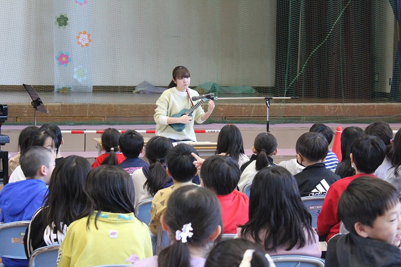 先週、本校の教員が全学年を対象に音楽会を企画し、歌や楽器の演奏を披露しました。1回目は、1~3年生に向けて。2回目は、4~5年生に向けて。ウクレレや、ピアノ、そして歌唱など、それぞれに得意なこと、好きなことを披露して、体育館いっぱいにステキな音楽を響かせました。
