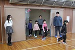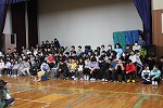 2つめのゲームは『進化じゃんけん』。アリ(しゃがんで)⇒さる(ウッキーのポーズ)⇒人間と、じゃんけんに勝ったら進化し、人間で勝てたらゴール!ひな壇に上がることができます。ただ、じゃんけんに負けてしまったら、人間でもアリまで戻ってしまいます。無条件に盛り上がる、大人気のゲームで、体育館じゅうが活気づきました。上級生が積極的に下級生に「ジャンケンしよう!」と声を掛けている姿をたくさん見かけ、心がほっこりしました。