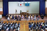 頼もしく優しい6年生と手をつないでの入場。在校生や教職員、保護者の皆様、地域の方々の温かい手拍子に合わせて歩く新一年生のみんなの姿がとても微笑ましかったです。