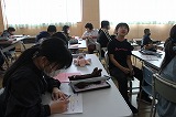 授業ではまず、10級から始まり、どんどん級が上がるにつれ難易度の高い曲になっている「リコーダー曲集」が配付され、6年生のみんなパラパラとめくっては「この曲知ってる!」「これならすぐに吹けそう」・・・と、意欲を高めていました。早速、楽譜に音階を書き込んだり、各自で演奏したりと、自主的に取り組んでいました。