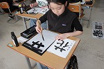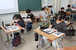 その後は、一人一人が『花』と向き合う時間。まずは、白い半紙に今から書く自分の『花』をイメージし、呼吸と姿勢を整えて書き始めました。動画で確認した筆使いに気をつけながら、お手本をよく見て『花』と向き合う4年生のみんなの心地いい緊張感、見事な集中力でした。