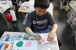 進んで水彩絵の具と水と筆を使って試しながら、自分の中の「いいかんじ!」を見つける子どもたち。つくりだす喜びを存分に味わう・・・これぞ、図画工作科の醍醐味です。これからも、形や色などに関わりながら、楽しく豊かに生活を創造しようとする子どもたちの感性を大切にしていきます。