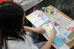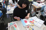 3年生のみんな、水彩絵の具と水でいろいろな色をつくったり、様々な筆の使い方を工夫したりして、色の感じ、形の感じ、それらの組み合わせによる感じ、色の明るさを味わいながら、表現していました。「春の桜なの!」「夜桜!」「桜が散り始めているところ・・・」「夏の暑い感じを描いているの!」「春・夏・秋・冬と、4枚描くよ!」「水をいっぱい入れて薄くしたよ」「水をほとんど入れないで立体的に!」「スポンジでポンポンした!」「筆をふって、しぶきを散らしたよ!」・・・と、一人一人がそれぞれに思いのままに描き、感覚を通して自分の色や形を見付け、表現することに夢中になっていました。見ているだけで、こちらもわくわくしてきました。