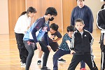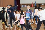 でも安心!6年生がそばに寄り添い、優しく手取り足取り教えてくれました。「手は、こうやって動かすんだよ」「足は開いてね」「腰を低くしてね」「両手を大きく開いて!」…など。丁寧にわかりやすく伝えていて、さすが6年生です!1年生のみんな、1つ1つの振り付けができるようになることを存分に楽しみ、喜んでいました。そんな姿を見ると、6年生も嬉しそう…達成感を味わうことができました。1年生に教えながら、自分たちも1年生のときに上級生に教わったことを思い出していたかな?!