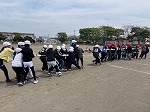 5・6年生の団体種目は今年度一新!『5色綱引き』に挑戦します。5色の綱を赤組と白組で取り合うというとても白熱する競技。5本のうち、3本取った方の組が勝ちとなります。朝日小学校では、綱ではなく竹を取り合う『竹取物語』でおなじみでした。