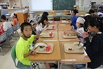 新冠小のたてわり班活動のねらいは、「異学年の交流を深めるとともに、高学年が活動をまとめ、リードする機会を多く取り入れる」ことにあります。また一つ経験を積み、ねらいの達成に近づくことができた、たてわり班給食となりました。