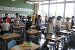 教室に戻ってからもそのいい緊張感をもった雰囲気は続き、どの教室でも二学期に向けての士気を高めていました。夏休みの思い出を交流したり、夏休みの課題を振り返ったり、二学期に向けての目標を立てたり…。それぞれの学級で、久しぶりに再会した仲間とともに、学校教育目標である「よく考え」「心美しく」「ねばり強く」「じょうぶな」力をつけていこうと気持ちを新たにしていました。