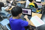 「ここ、動くようにしたの!」「字の大きさを変えたよ」「写真を背景にしたんだよね」…と紹介してくれる姿が誇らしげ。自分の制作した作品に満足し、自信をもっている様子が伝わってきました。納得のいく作品に仕上げ、成果を交流し合うのが楽しみですね。3年生のICT機器活用のスキルがどんどん高まっています。