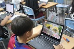 昨日、3年生の教室に行くと、ちょうど仕上げに取りかかっているところで、その完成度の高さにただただ感嘆しました。1学期は初めて使うという人も多く、まだまだ手探り状態でしたが、完成に向けて、関連するイラストや写真をふんだんに取り入れていたり、発表の時に強調するためにアニメーションを取り入れていたりと、たくさんの工夫が凝らされていました。途中、わからない操作があるときや、友達のアイデアを取り入れたいときには率先して交流し、アドバイスをしたり、教え合ったりと、学び合う姿もたくさん見られました。