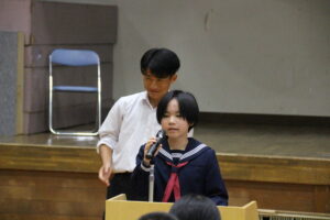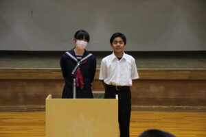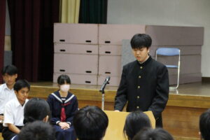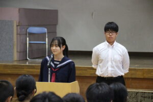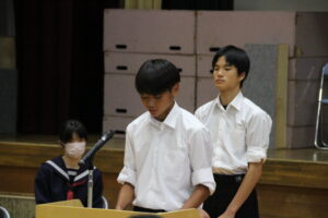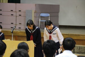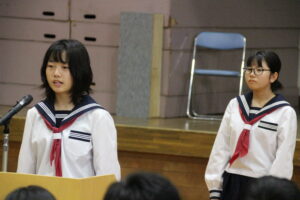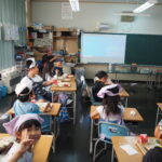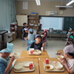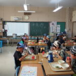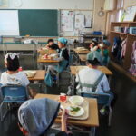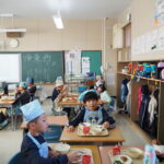 写真は2年生の給食時間の様子です。今日から給食時間の放送も始まり、音楽を聴きながらみなさん楽しく給食時間を過ごしていました。