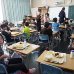 10月15日の給食は、ご飯、肉団子、切干大根ツナ和え、サツマイモのみそ汁、牛乳でした。写真は、3年生の給食時間の様子です。給食当番もしっかり行っていました。(2組のみなさんの写真は、今日16日に訪問したものを載せています。) みなさん楽しい雰囲気の中、給食時間を過ごしていました。