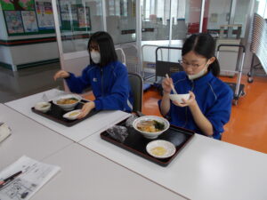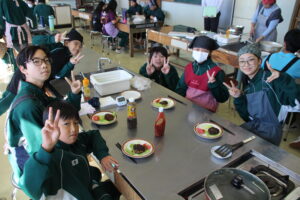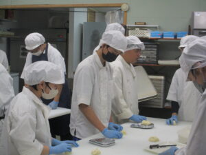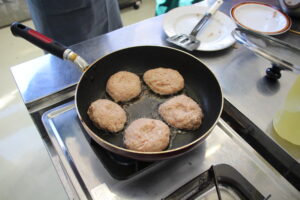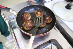 10月23日(木)24日(金)家庭科の調理実習ということで、1年A組・B組がそれぞれ行いました。ハンバーグを協力して作り、みんなでおいしく食べたようです。
