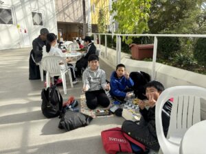 次の見学地サンガーデンはガラス屋根の温室で育った様々な花が咲く施設です。ここではお昼も兼ねていたので、お待ちかねのお弁当タイム! 本日1番の笑顔があふれる時間でした。朝早くからの準備ありがとうございます。