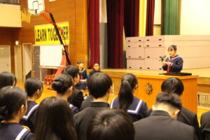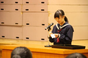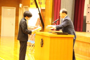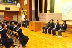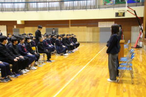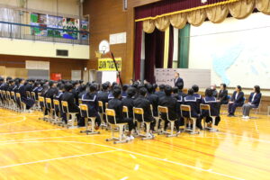 3月24日(火)令和7年度の修了式が行われました。生徒会代表と各学級代表からの挨拶があり、この1年間の思い出を振り返り、自分自身の成長とこれからの目標を発表していました。また、引き続き離任式が行われ、9名の教職員の方々が本校を離れることになり、生徒会長からはなむけの言葉がありました。お世話になった方々なので、名残りおしいですが、新天地でのご活躍を祈っています。