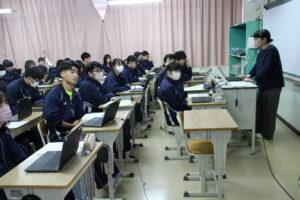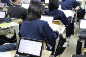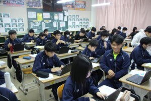 11月11日(火)公立高校Web出願をするにあたり、3年生がPCに入力する事前練習ということで、出願シュミレーションを行いました。入力画面に、住所・氏名・出願高校・出願学科第1志望・第2志望等を入力する作業でしたが、意外にも難しくて、どこの欄に入力したらよいのかを仲間と教えながら取組んでいました。この後、一時保存をして、パスワードを設定して、PDF出力し、さらに本番はプリントアウトもするとあって、なかなかの作業であっという間の1時間で、教室中にどっと疲れがでていました。この後、家でもシュミレーションをおこない練習をします。12月本番のWeb出願に向けて、いよいよ緊張感も高まってきました。
