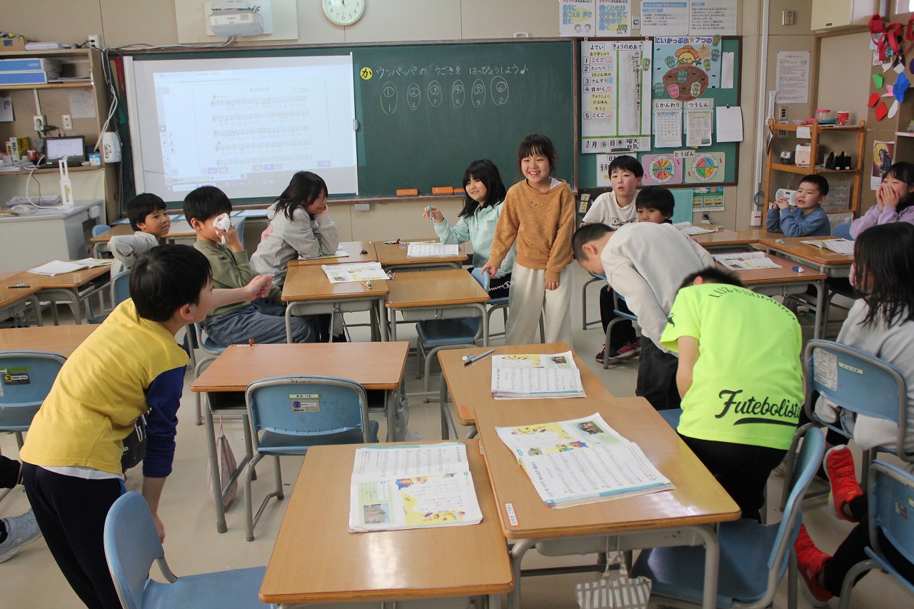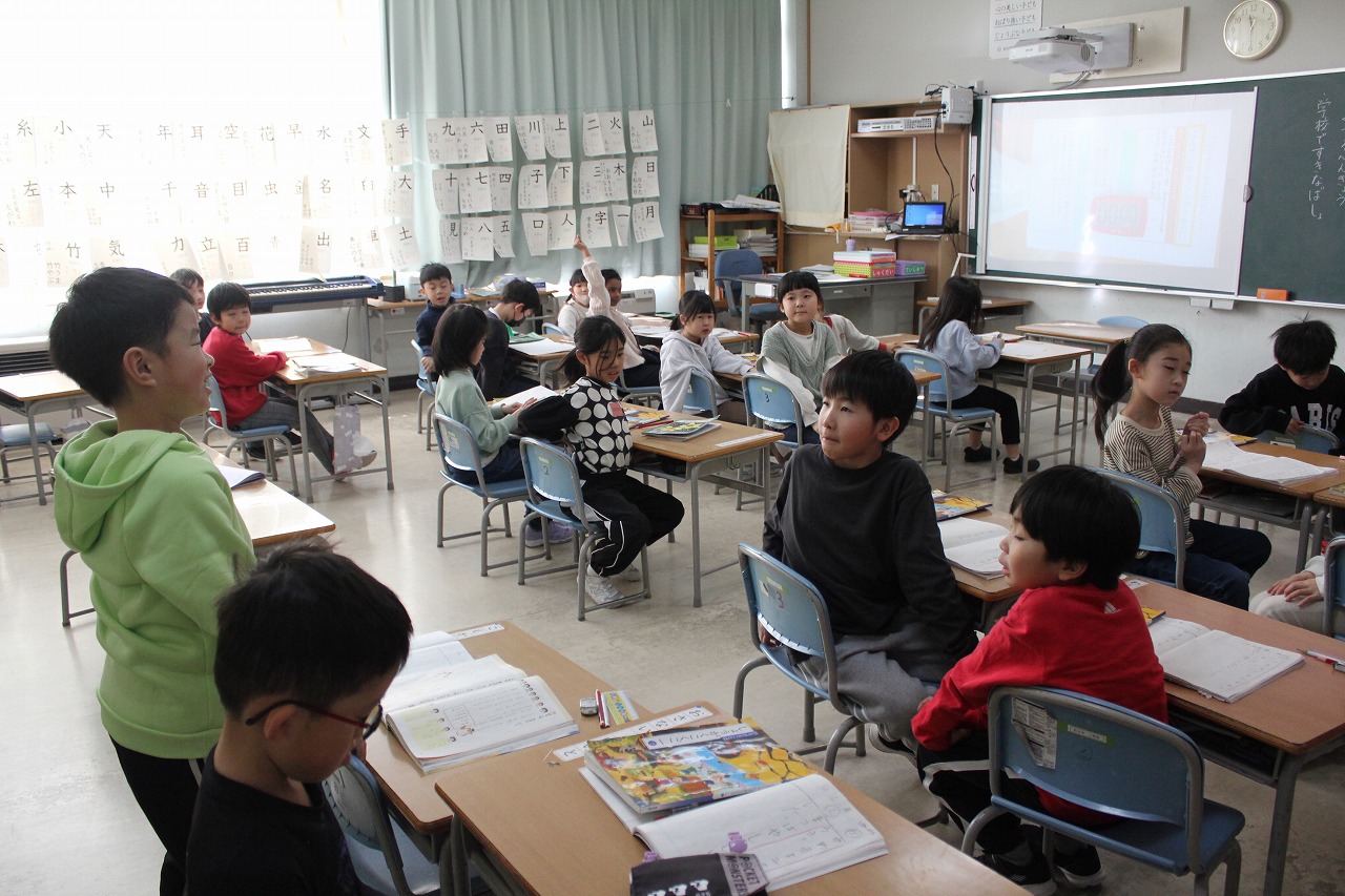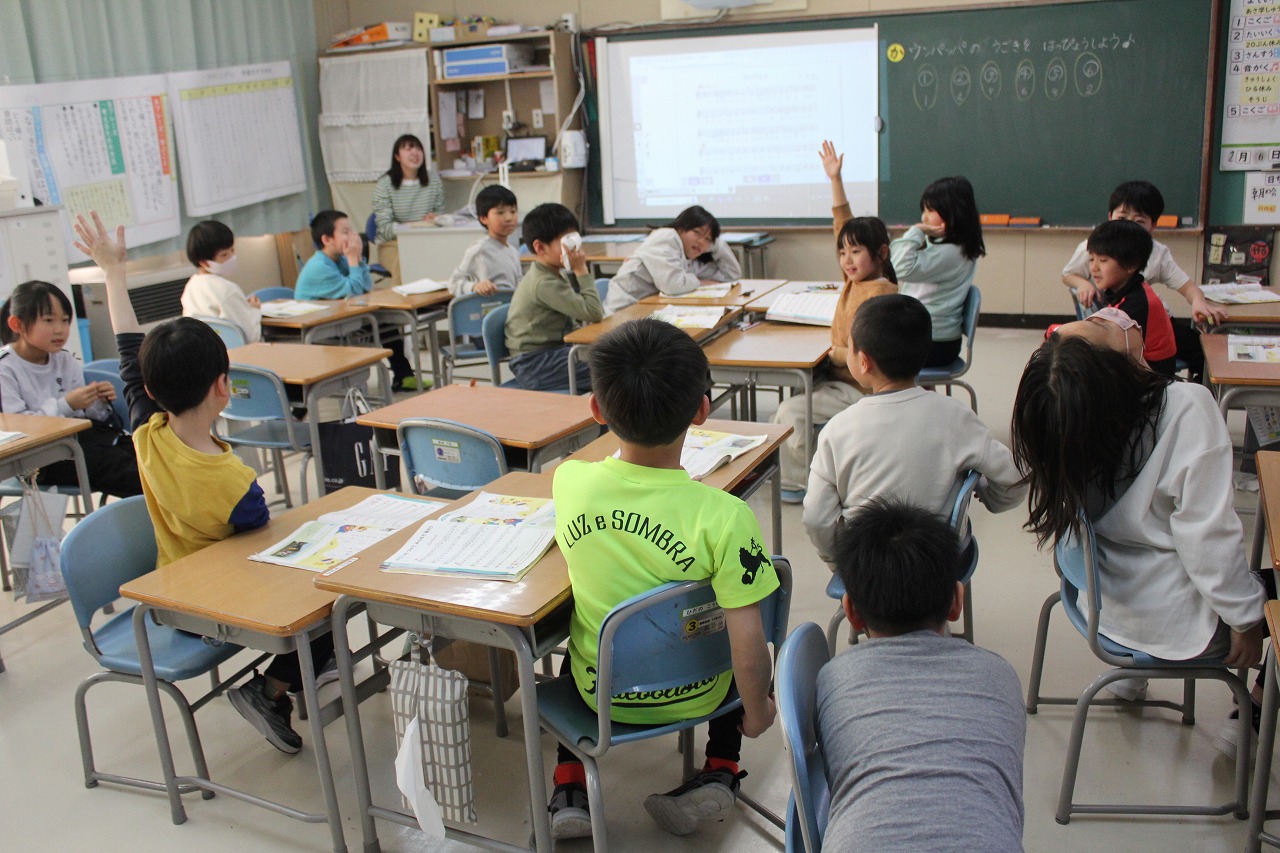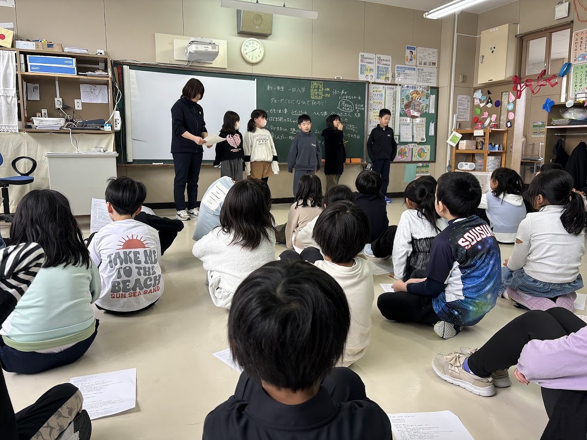 1年生も三学期になると、友達同士の発言を聴き合う力がしっかりつき、自分たちでリレー指名をしながら発言をつなげることができるようになっていて、とても頼もしかったです。発言している人の方に体を向けて聴くこともできていて、この一年での成長を感じました。