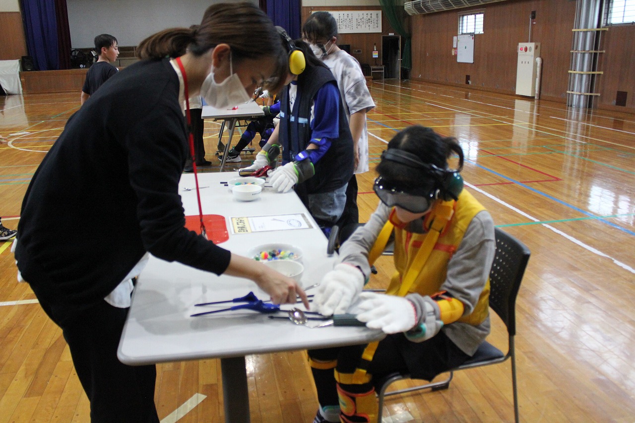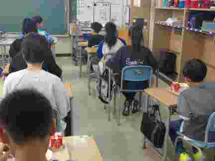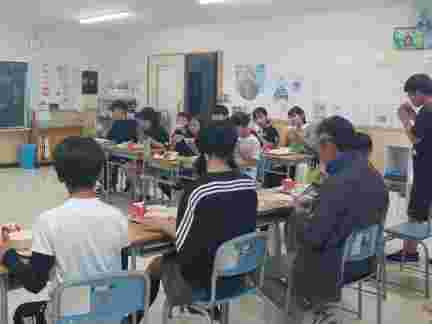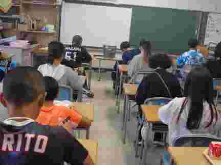 2年生では早速歌詞が配られ、歌『この星に生まれて』の練習に取り組んでいました。CDと先生の歌声の範唱を聴いているうちに、口ずさむ人がどんどん増えていき、中にはしっとりとした曲の雰囲気と歌詞に浸りながら歌ったり、指揮者になった気分で鉛筆を指揮棒に見立てて指揮をしながら歌ったり、体でリズムをとってノリノリで歌ったりしている人もいて、見ているだけでとても楽しい気分になりました。一人一人が存分に『この星に生まれて』の曲の世界を味わっていました。