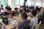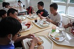 ◆国少に到着!・・・記念撮影の後は、早速お昼ご飯。食事は全てバイキング形式で、自分の食べたいものを食べられる分だけ取って自己調整を図るいい経験でした。