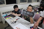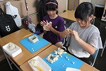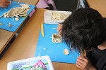 ◆焼き板クラフト・・・木の板をバーナーで焼き、黒くかっこよく磨いた後、好きなデザインやイラストで彩り、部屋に飾るプレートを作りました。プレートをぶら下げるためのフックを取り付ける場面では、手伝ったり助け合ったりする場面がたくさん見られ、とても素敵な時間となりました。