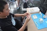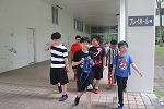 ◆二日目は朝から大忙し!・・・6時半起床⇒部屋の整理⇒朝のつどい⇒朝食⇒清掃活動⇒フィールドワーク・・・と、ハードスケジュール。朝の集いでは、ラジオ体操でしっかり目覚め、朝ごはんもたっぷり食べて、名残惜しい2日目を過ごし、国少を後にしました。