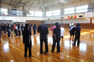 10月3日(金)家庭科の「日本の衣服の文化」の単元で、着物実習が行われました。和服は洋服に比べて着用する機会が少なくなっているが、人生の節目などに和服を着用し、生活文化として今でも継承されていることを理解してもらう目的で行いました。生徒のなかには、初めて和服を着用した人もいて、和服文化のよさを堪能していました。