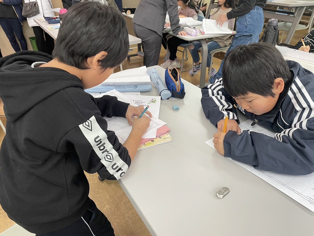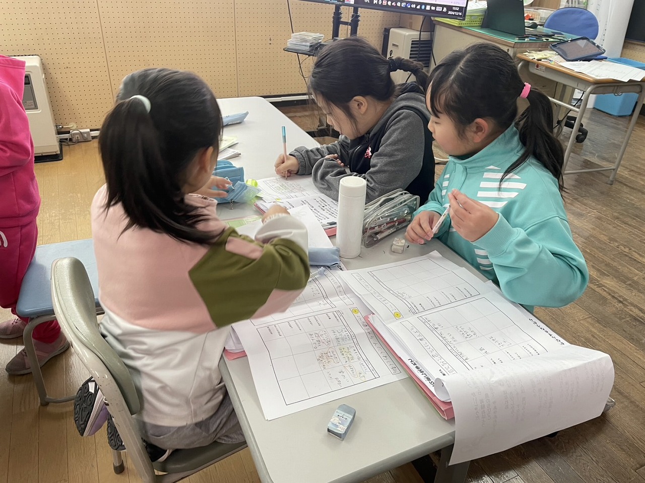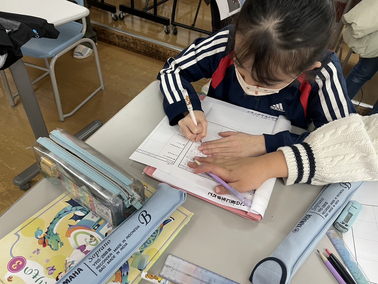 高学年は、早速休み明けの漢字のテストに取り組んだり、外国語でペアになって町にある物を英語で紹介し合ったりと、初日から集中して各教科の学習に取り組む姿が見られました。