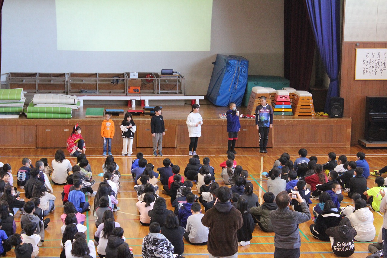 2時間目からは、各教室で三学期初日の学習に取り組んでいました。低学年は、冬休みの日記を発表し合って思い出を交流していました。スキーをしたり、映画を観たり、温泉に入ったり・・・。冬休みならではの思い出を誇らしげに発表している姿が素敵でした。