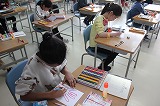 昨日の3・4時間目、1年生は「ちょきちょき かざり」という題材に取り組んでいました。