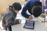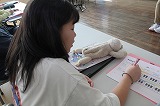 「ちょきちょき かざり」・・・その名の通り、「紙を折って切っていろいろな形をつくったり、身の回りを飾ったりすることを楽しむ」ことが目標です。まずは、はさみの安全で適切な使い方を確かめた上で、紙を折ったり、重ねたりして切るとあら不思議!いろいろな形ができて大喜びの1年生。「4人つながったよ!」「手をつないでるんだよ!」「真ん中の二人、手が離れちゃった・・・」「足を太くしたんだ!」・・・と、嬉しそうに見せてくれました。
