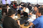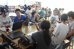 『ポロシリ生活館』では学芸員の新川さんにお世話になり、まずは施設にある資料などについて説明をしていただきました。その後は、お楽しみのトンボ玉作り。初めてというご家族や、昨年も参加されたというご家族もいらして、それぞれ親子でトンボ玉作りに夢中になりました。好きな色のガラス棒を選び、玉の大きさや形にこだわり、安全に気をつけながらガラスをガスバーナーで溶かして玉にしていくという、ここでしかできない貴重な体験ができました。